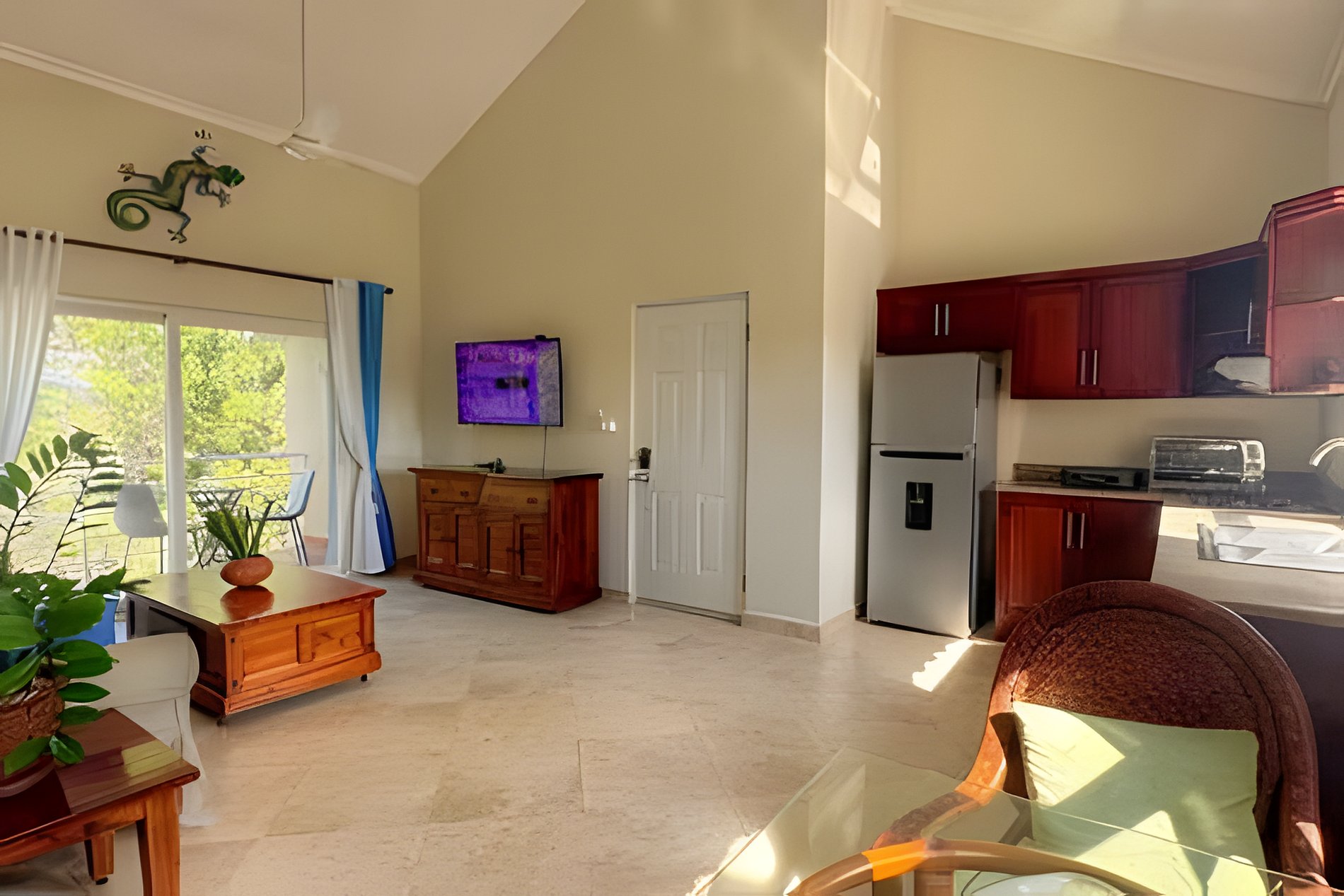 Enjoy a comfortable stay in this fully equipped apartment designed for your convenience. It features a smart layout, washer and dryer, high-speed internet, and a balcony perfect for your morning coffee. Plus, it offers private parking and 24/7 security for your peace of mind. Just minutes from the beach and the vibrant life of Cabarete!